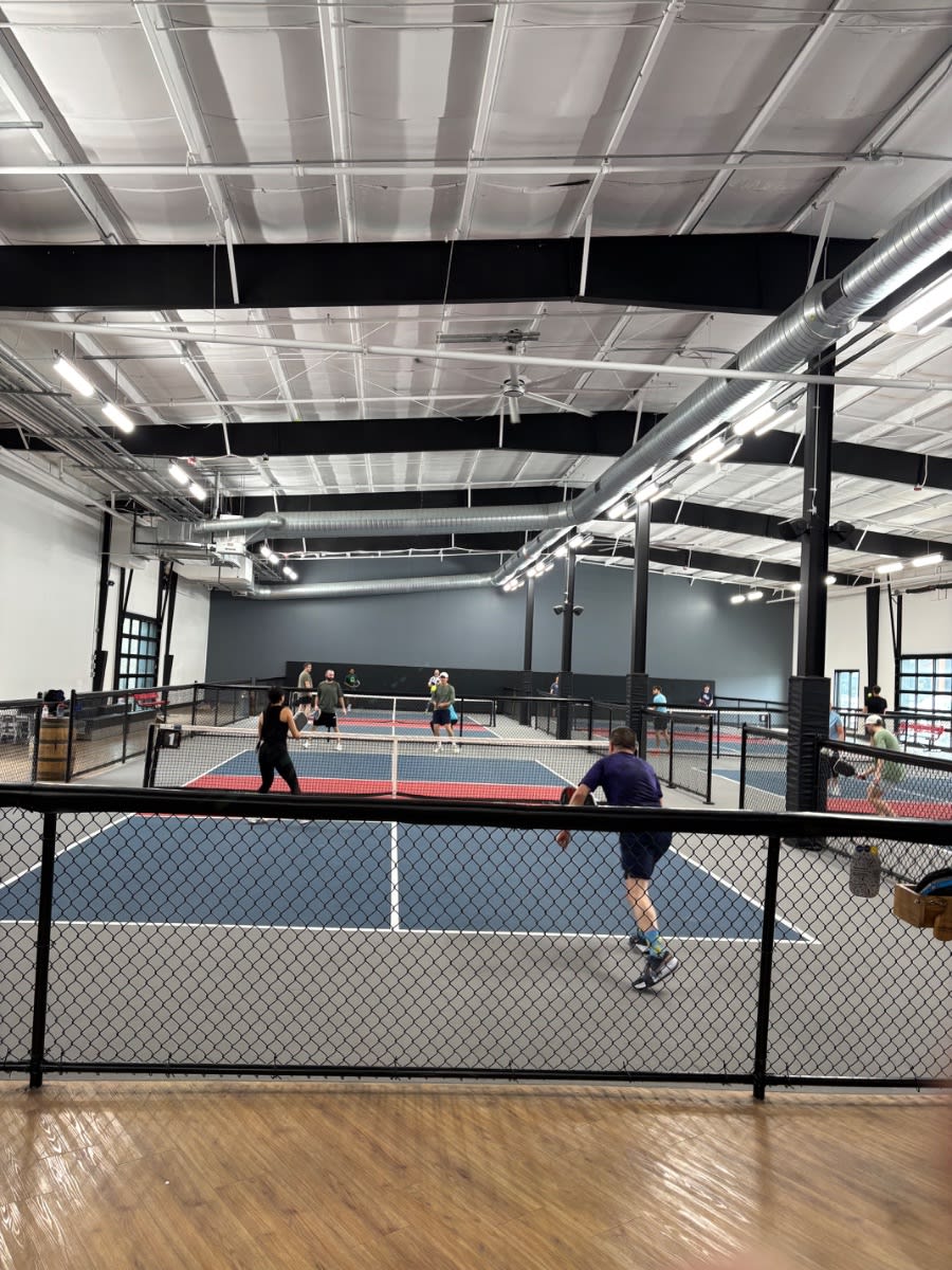 Before you even check in, the indoor pickleball facility tells you something important: pickleball is taken seriously here.