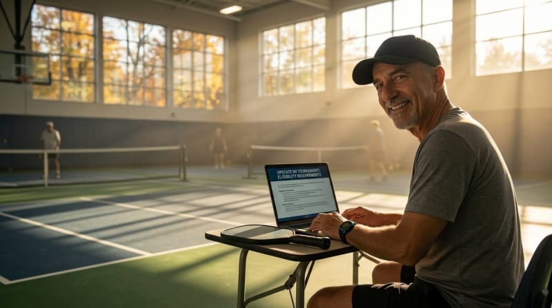 Amateur divisions include men's singles, women's singles, men's doubles, women's doubles, and mixed doubles. You can enter one or multiple events. For division placement, DUPR.com) is the most accurate and widely used rating system in pickleball today, using actual match results rather than self-assessment to measure skill level. If you don't have a DUPR yet, the DUPR site explains that you can get one by playing in any DUPR-tracked event — once the first result is uploaded, the algorithm calculates your rating and updates it automatically. If you haven't played in a rated event, USA Pickleball's self-rating guide is the standard starting point for division selection.